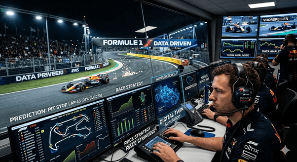 Hoewel de voorbereiding in de fabriek essentieel is, wordt de definitieve data-analyse tijdens de race zelf pas echt kritiek. In de ‘Strategy Room’ op het circuit en in de ‘Mission Control’ op de thuisbasis kijken tientallen analisten live mee. Zij berekenen voortdurend of ze hun coureur eerder naar binnen halen voor een vroege stop of juist langer door laten rijden om zo de concurrentie slim af te zijn. Hierbij wordt niet alleen gekeken naar de eigen prestaties, maar ook naar de historische data van concurrenten. De beslissing om naar binnen te gaan voor nieuwe banden is geen gok, maar een kansberekening.